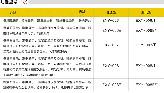 EXY系列開關柜智能操控裝置功能強大,用于3~35KV戶內開關柜,取代現有的一次回路模擬、帶電顯示器、自動加熱除濕控制器、斷路器分合閘按鈕、斷路器分合閘狀態指示、接地開關指示、增加了智能語音防誤、帶電提示、綜合電力參數顯示、人體感應等功能及RS485通信接口,適用于中置柜、手車柜、固定柜、環網柜等多種開關柜。